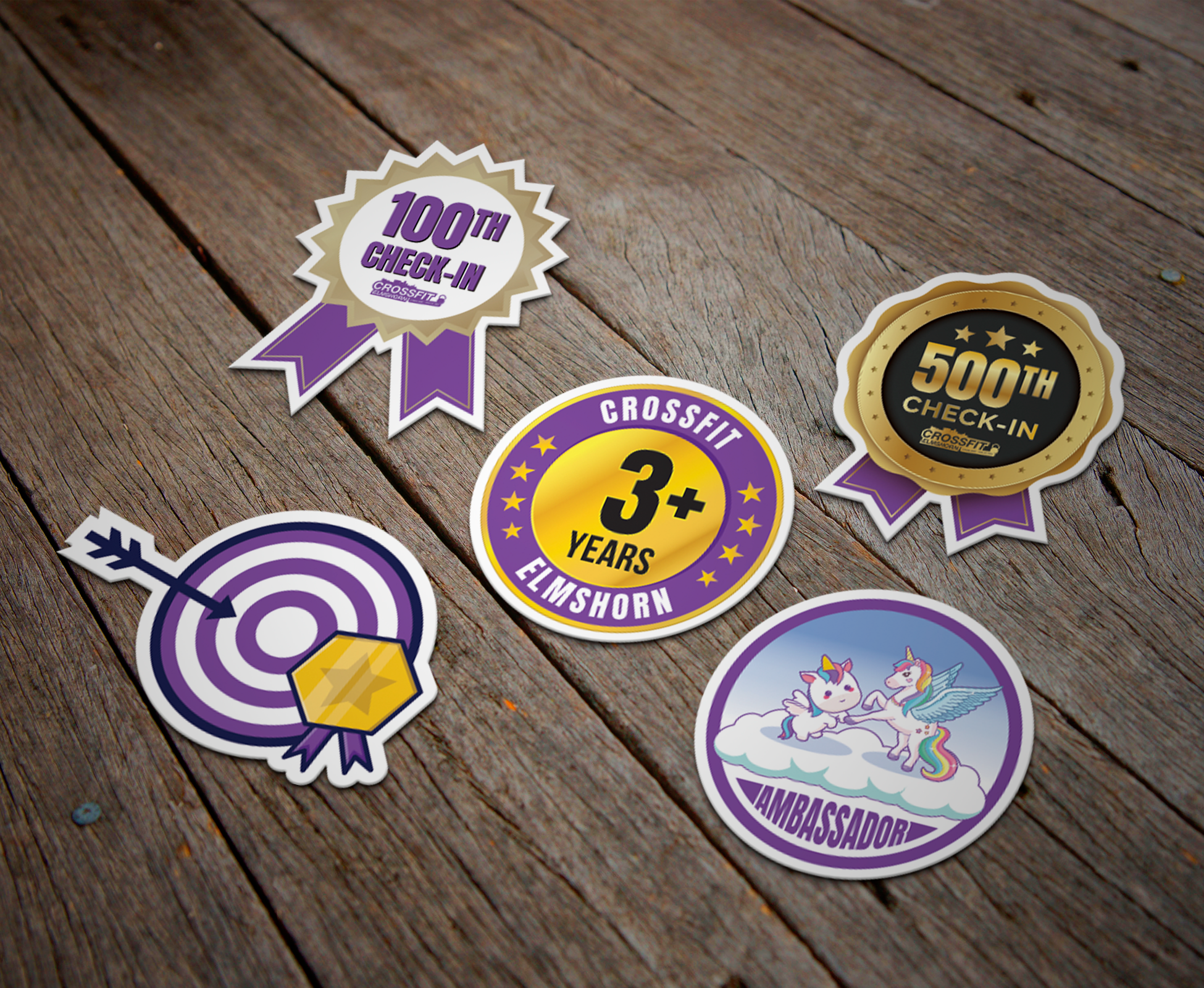 • 500th Check-In: diesen erhältst Du bei Deinem 500. WOD in unserer Box! Ein riesiger Meilenstein, welcher in der Regel ca. 3 Jahre – oder auch länger – mit beständigem Training erfordert! Mach‘ Dir die Haare schön, damit Du bei Übergabe für ein Foto für unsere Social Media Kanäle bereit bist!